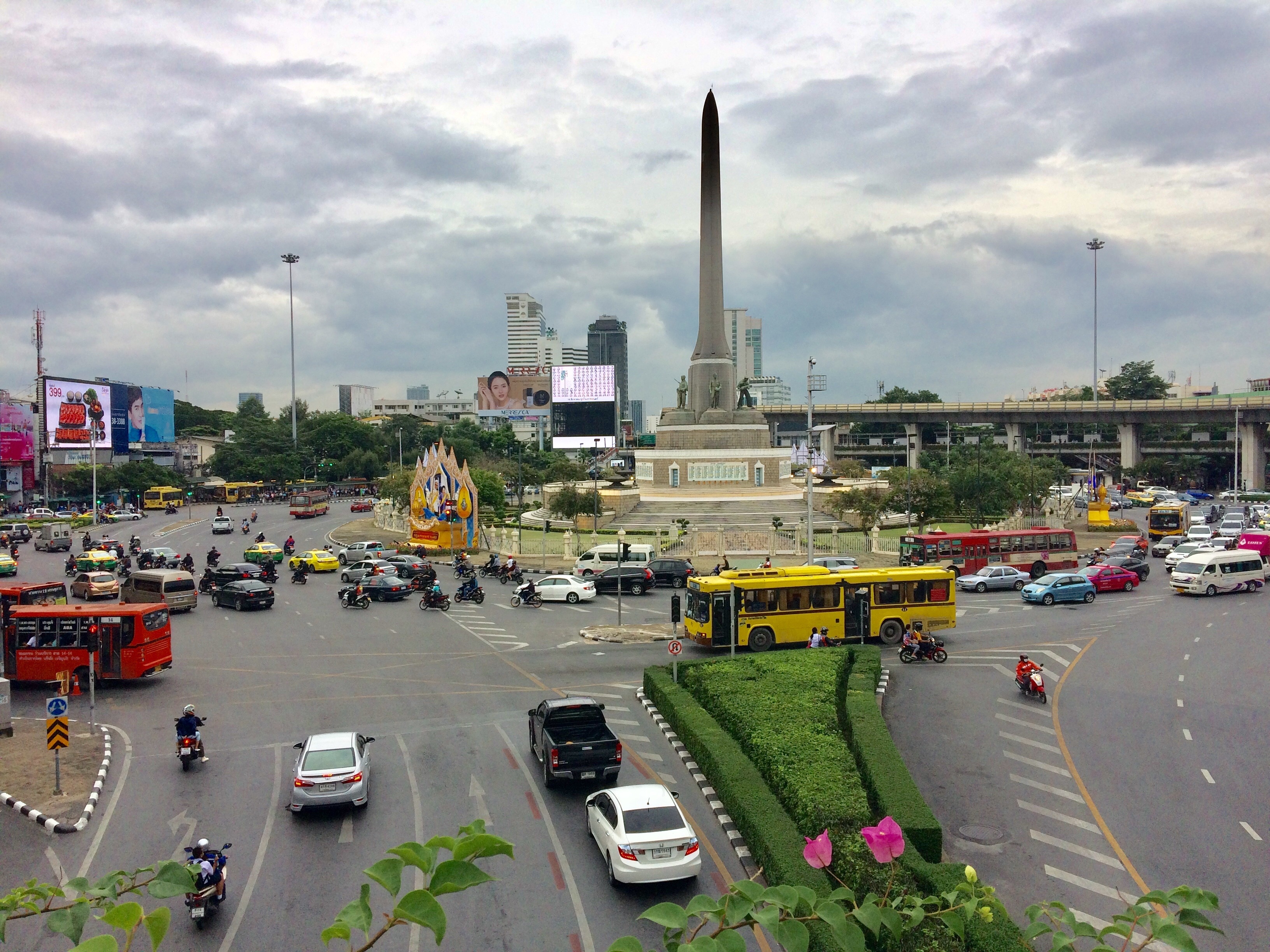 BTSビクトリーモニュメント駅(別の名をアヌサワリー・チャイ駅)で降りてランナム通りを歩く。