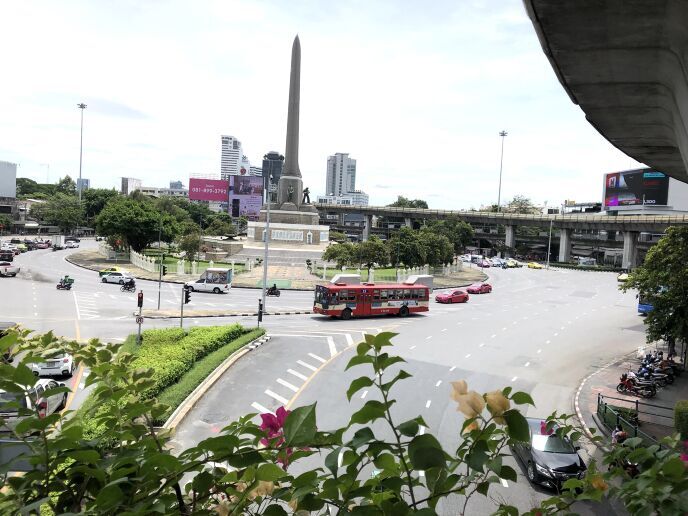 地下鉄ホアランポーン駅から二つ目のシーロム駅で再びBTSに乗り換え、さらにサイアムでモーチット行きに乗り換えて三つ目がアヌサワリー・チャイ駅(ビクトリーモニュメント駅)である。