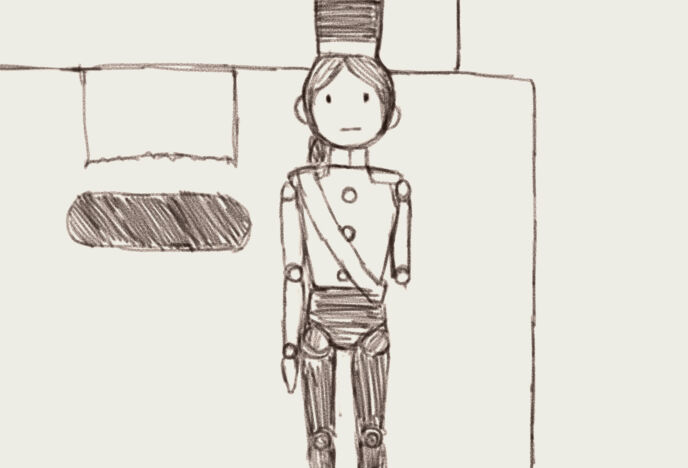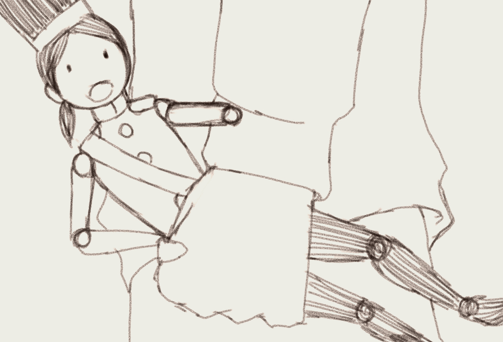お父さんの手から逃れようとする兵隊さんには、女の子が叫んでいるのが聞こえます。