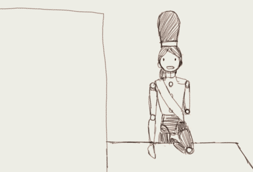 兵隊さんの体は、不意に伸びてきた大きな手に掴まれてしまいます。