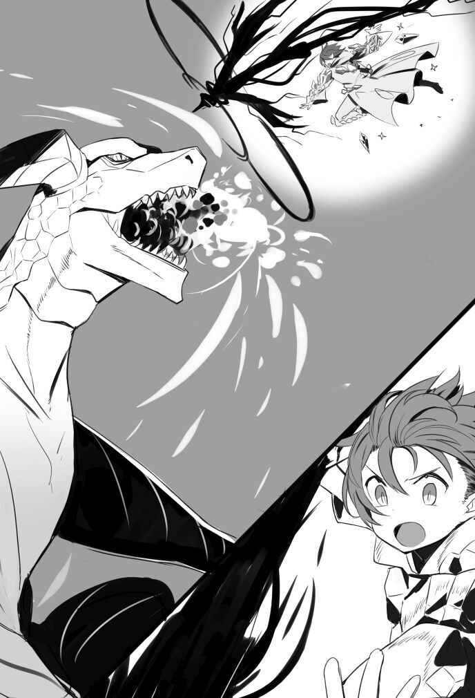 火竜は顎が外れかねない勢いで口を開き、ルノに向けて火炎放射する。ルノはとっさに手のひらを出して氷盾を作るが、あまりの熱量に溶かされていく。