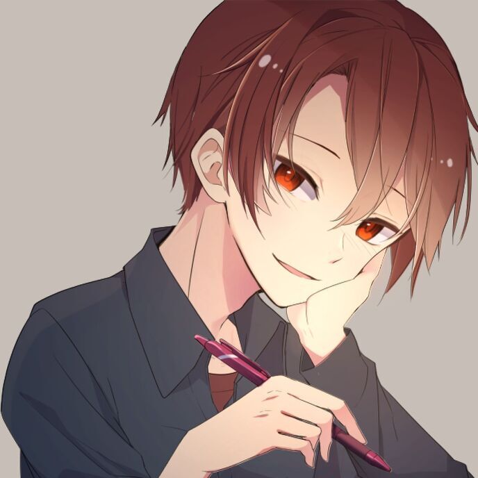 真面目だが強気で、どこか挑発的な笑みを浮かべる青年。