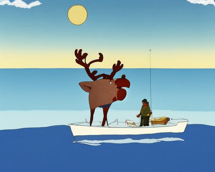 漁師が海で泳いでいる立派な角を持ったトナカイを呼びました。