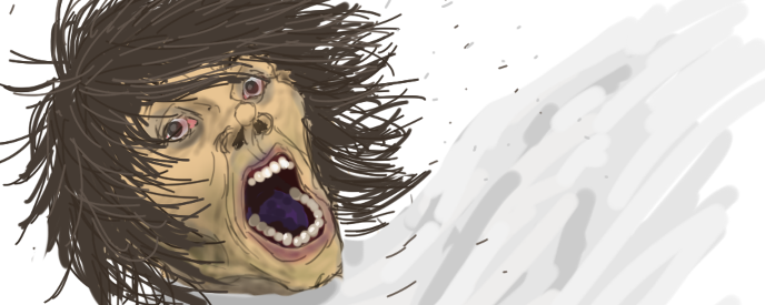 噛みつこうとする客の男のあごをつかみ防いだ。坂木の右手には散髪用のハサミがある。一瞬、これで突き刺せばと、考えたが、商売道具でそれはまずいだろうと、背後のソファーにハサミを投げた。客の男は首を左右に振り坂木に食いつこうとした。周りを見ると、ざわざわと数人、遠回りに見ている。どうも、誰も助けてくれないようだな、坂木はそう考えた。