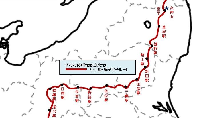 こうして、九日もの間、尾張栗原の騎馬隊によって、蜂岡皇子、糠手子一行は、木曽および碓氷峠の難関を越えたのである。