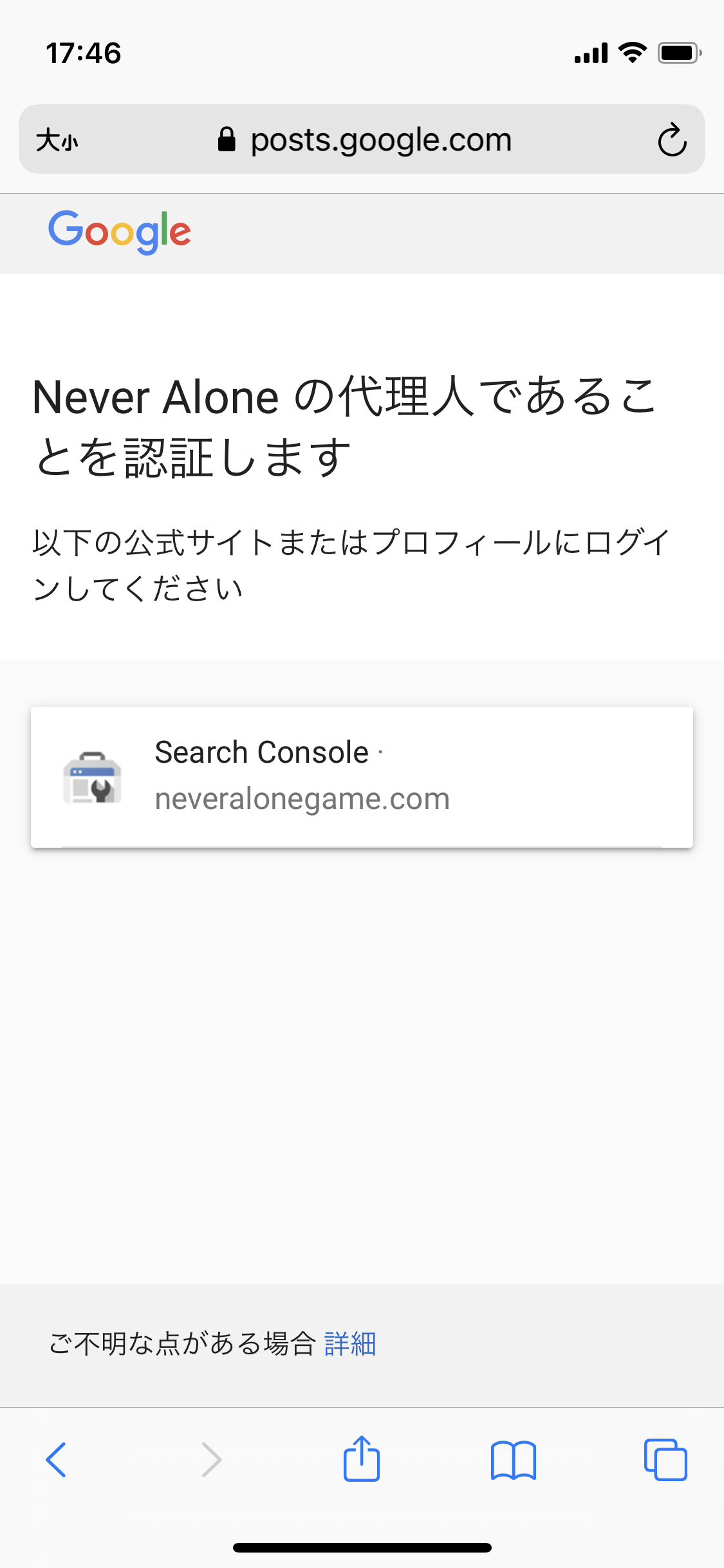 Never Alone の代理人であることを認証します 以下の公式サイトまたはプロフィールにログインしてください