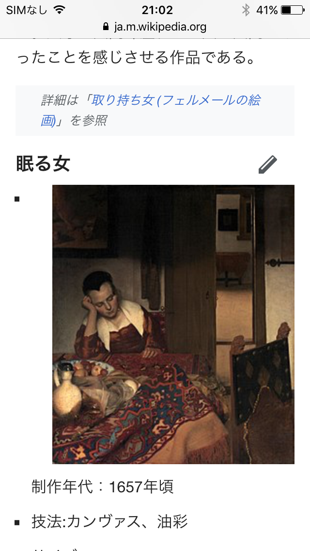 美術家で評論家でもあり、フェルメール研究でも名高い、小林頼子さんは、フェルメールの『眠る女』のことを、「比較的初期の作品で、期待していたほどの遠近感もない。考察していた物語性も断念」と解説されていた。