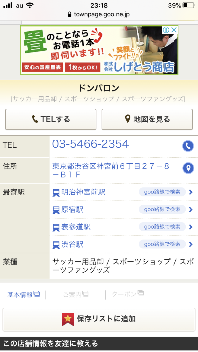 サッカーの用品を売っているスポーツ店がヒットした。