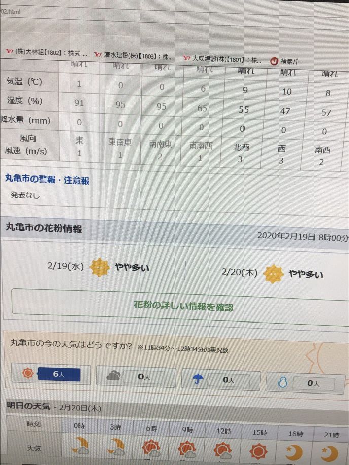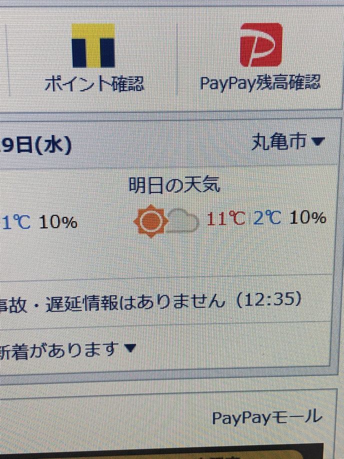 以前富山県の天気予報が表示された、パソコンは、今日は、丸亀市だった。
