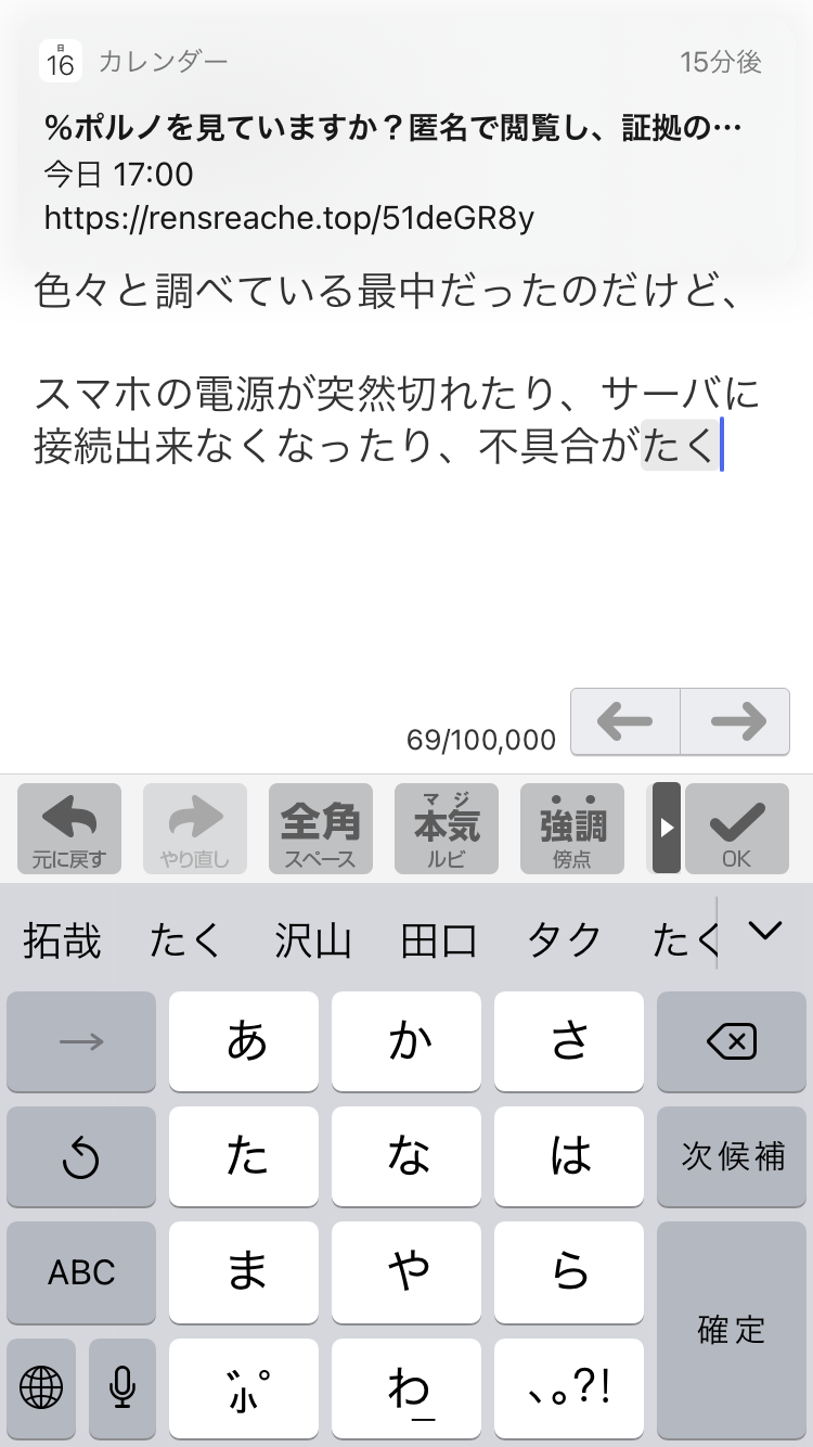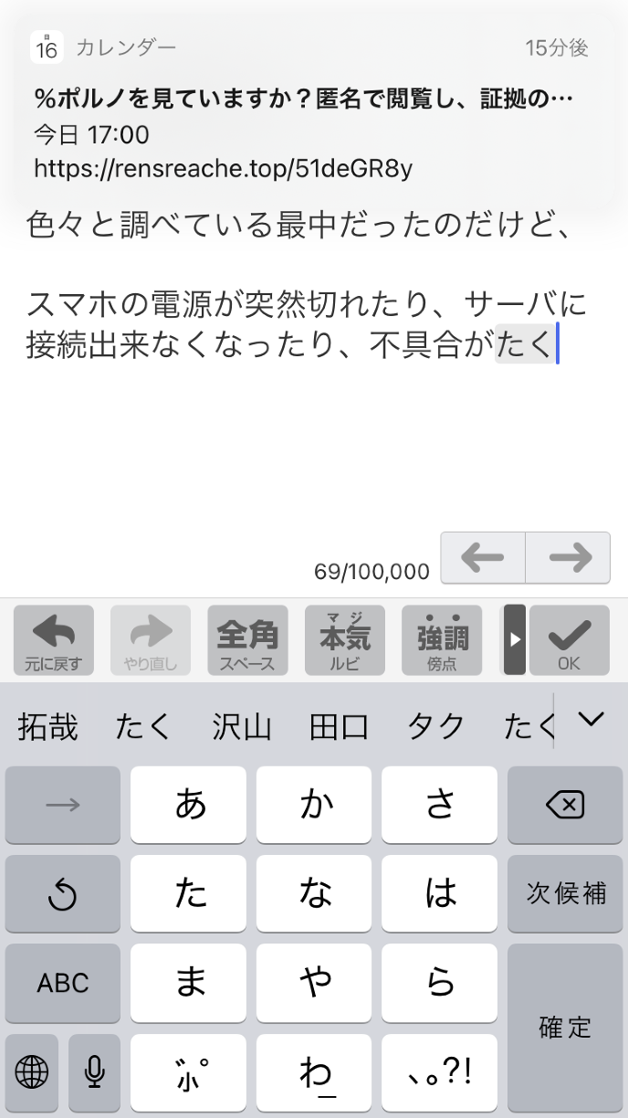 カレンダーの、メッセージを撮る目的で、スクショをした。
