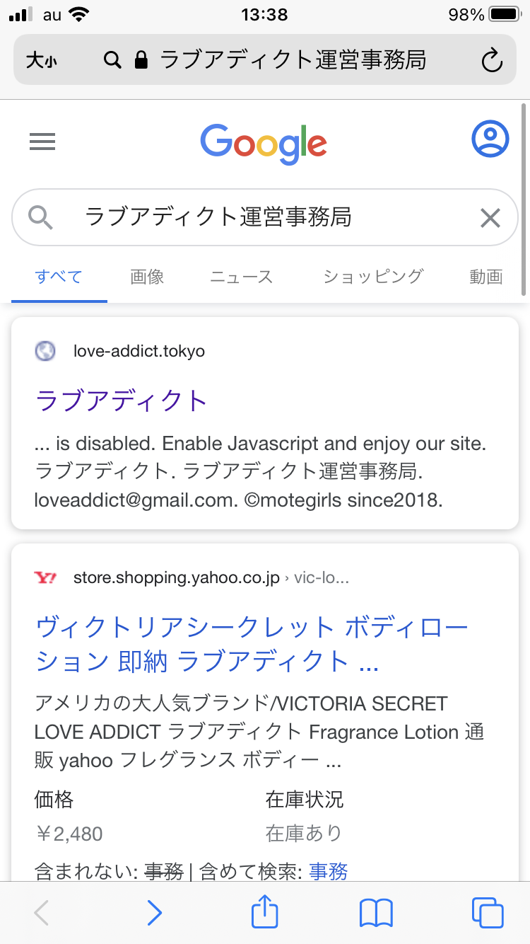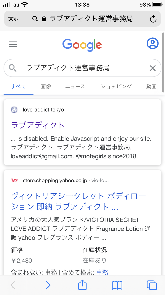 love-adict.tokyo をキーワードにしてGoogle検索をかけてみた。