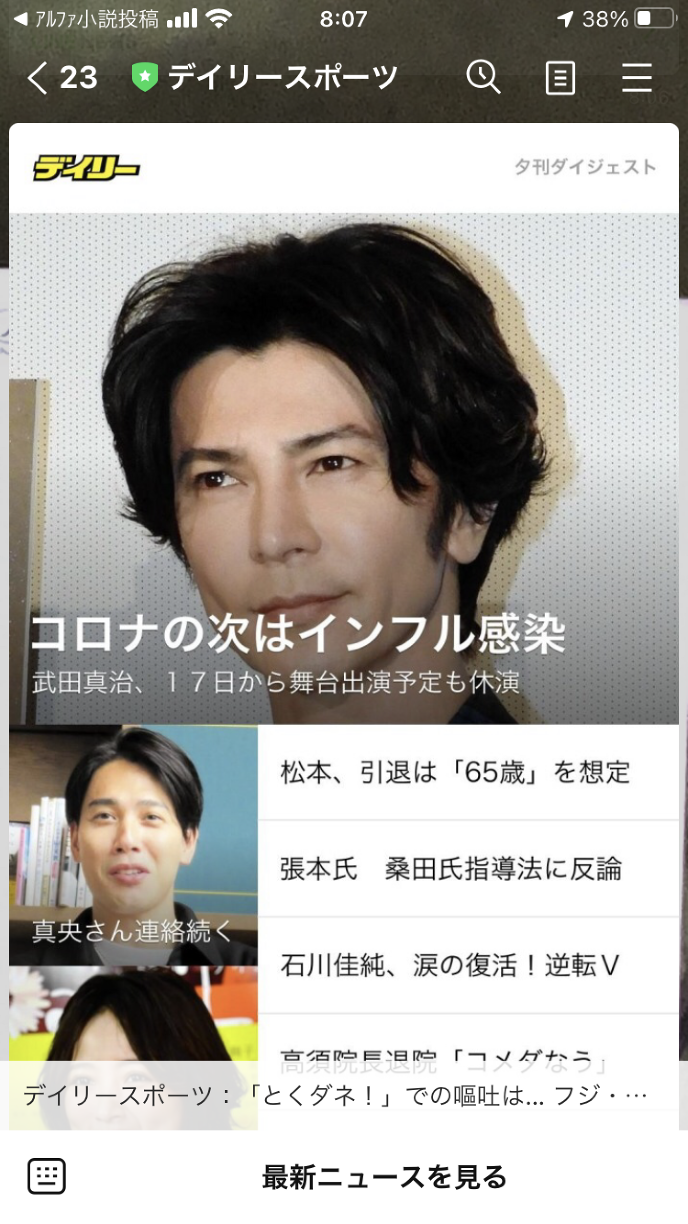 私は、とくダネ!…  の記事を読むつもりだったのに、武田真治さんの記事が登場した。