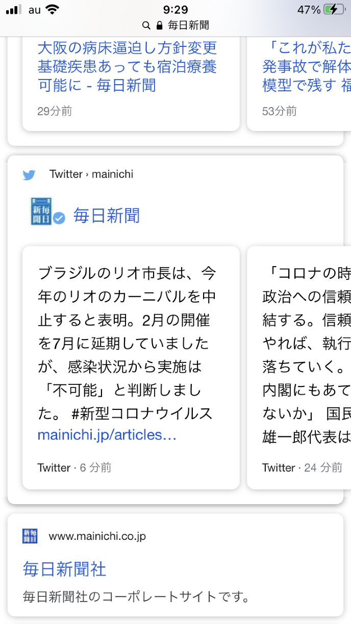 Twitterの画面が出るのは、毎日新聞だけだった。