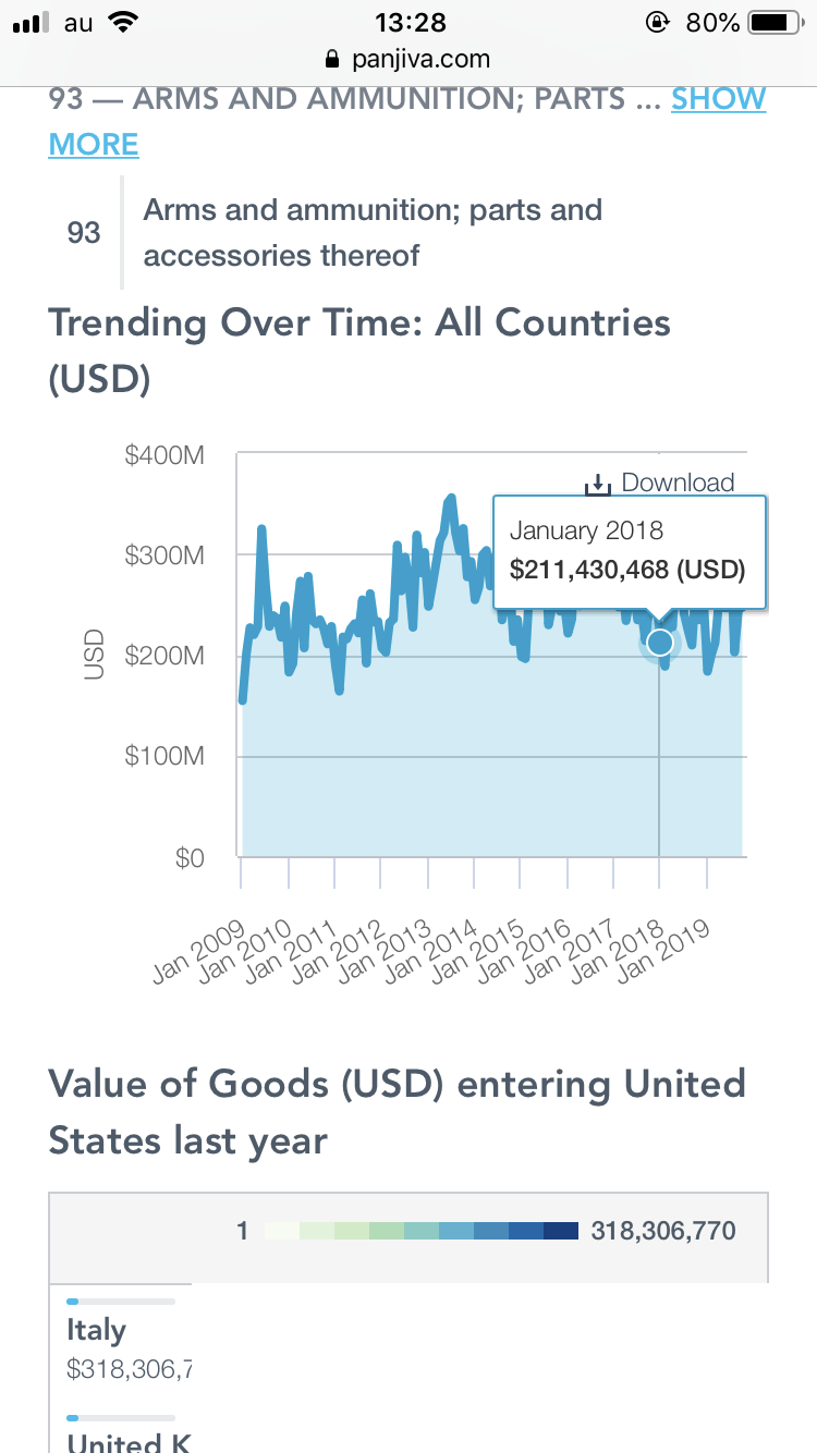 アメリカ合衆国はHSコード93の傾向を輸入します—武器と弾薬。部品...詳細を表示