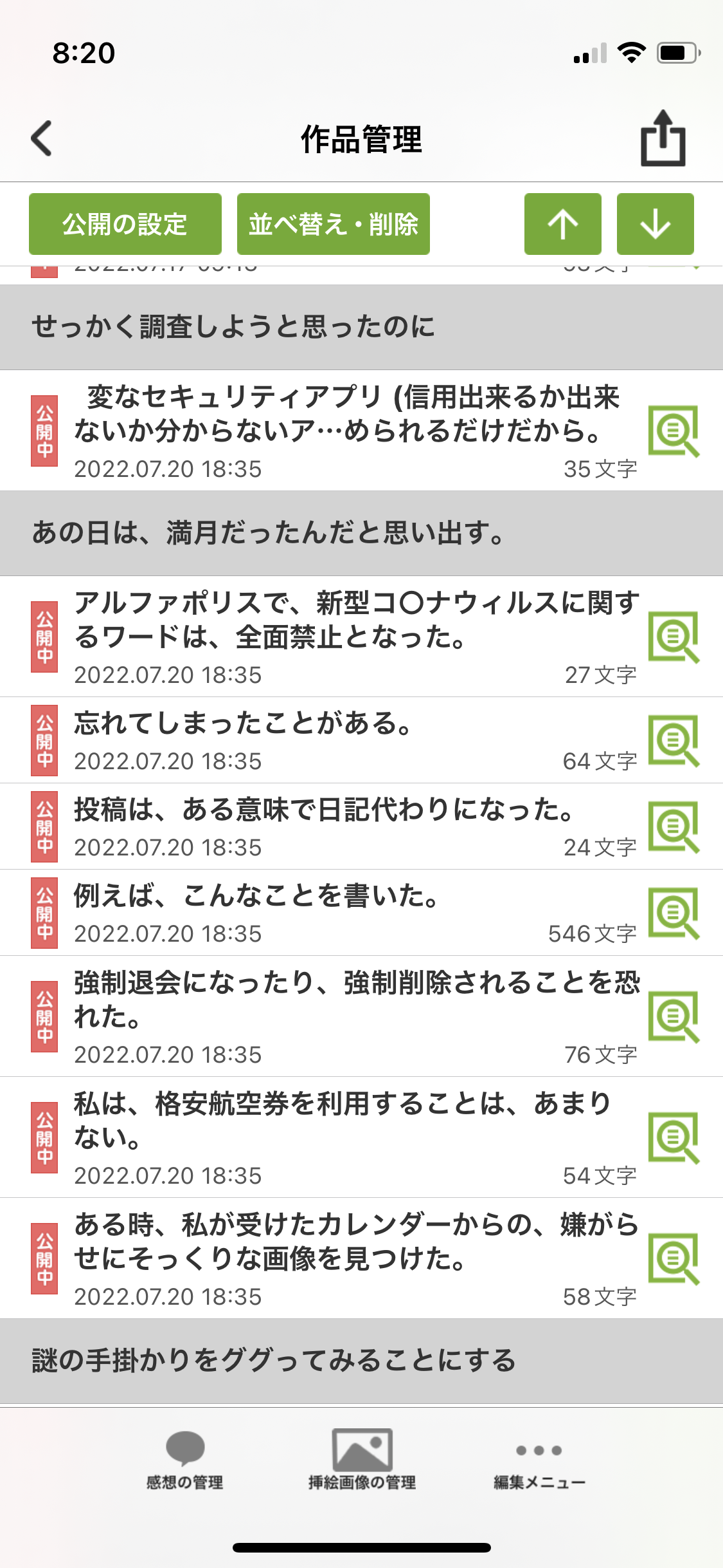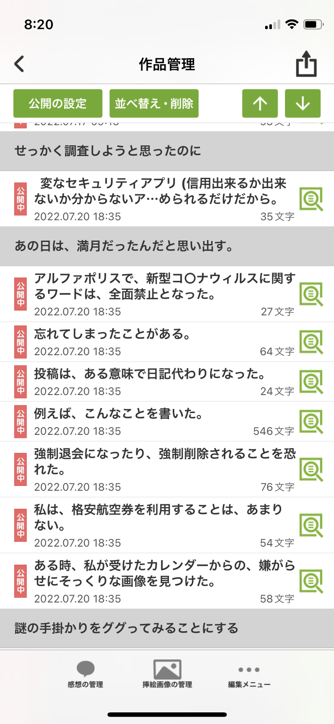 非公開にされたから、ほとんどの小説が、2022年7月7日以後の日付になってます。