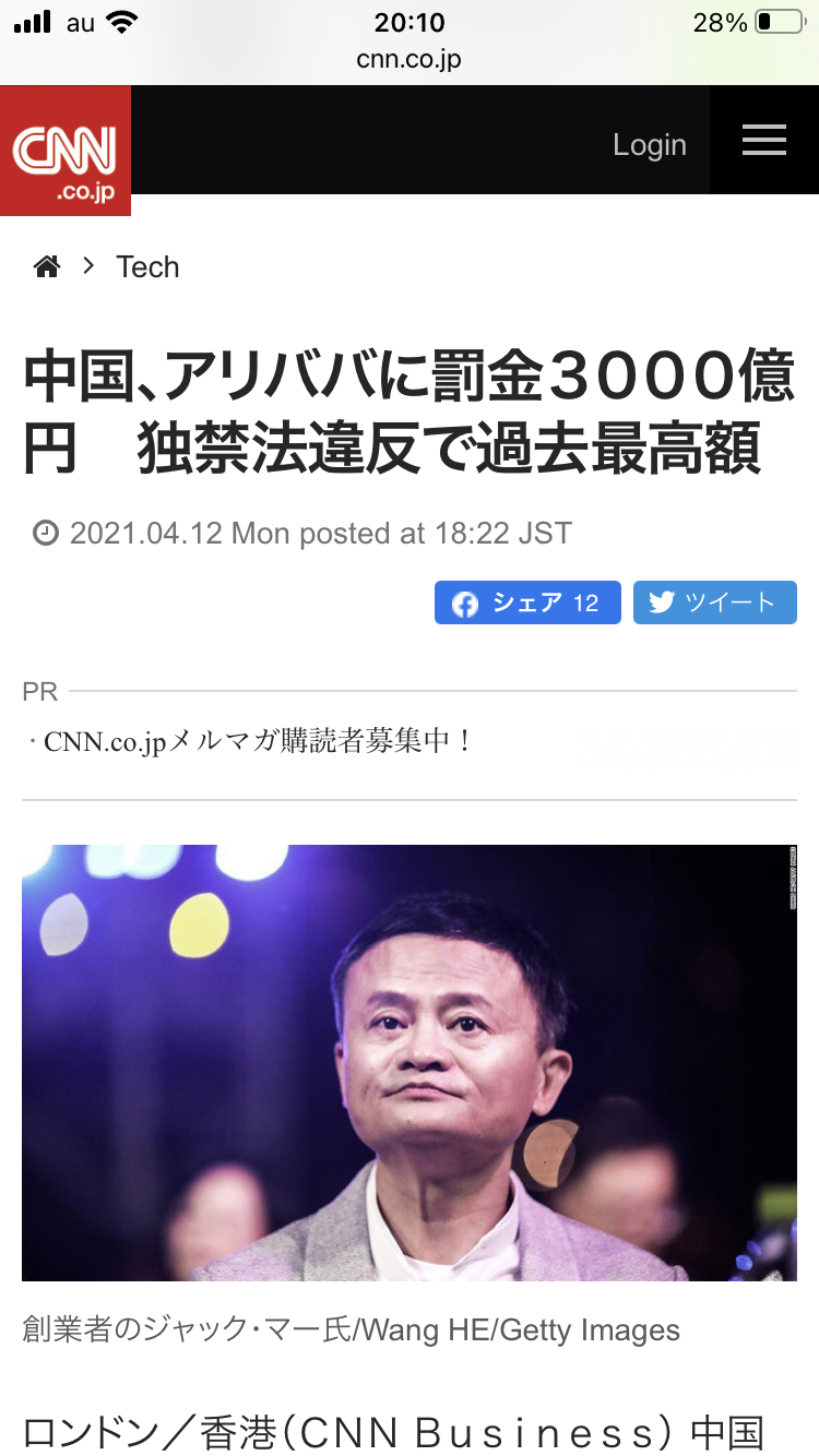 中国、アリババに罰金3000億円 独禁法違反で過去最高額