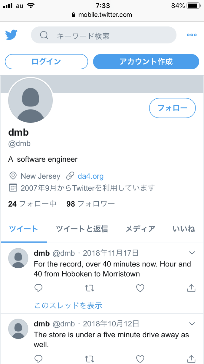 通常、公式のアカウントではない一個人のツイッターが表示されることはない。