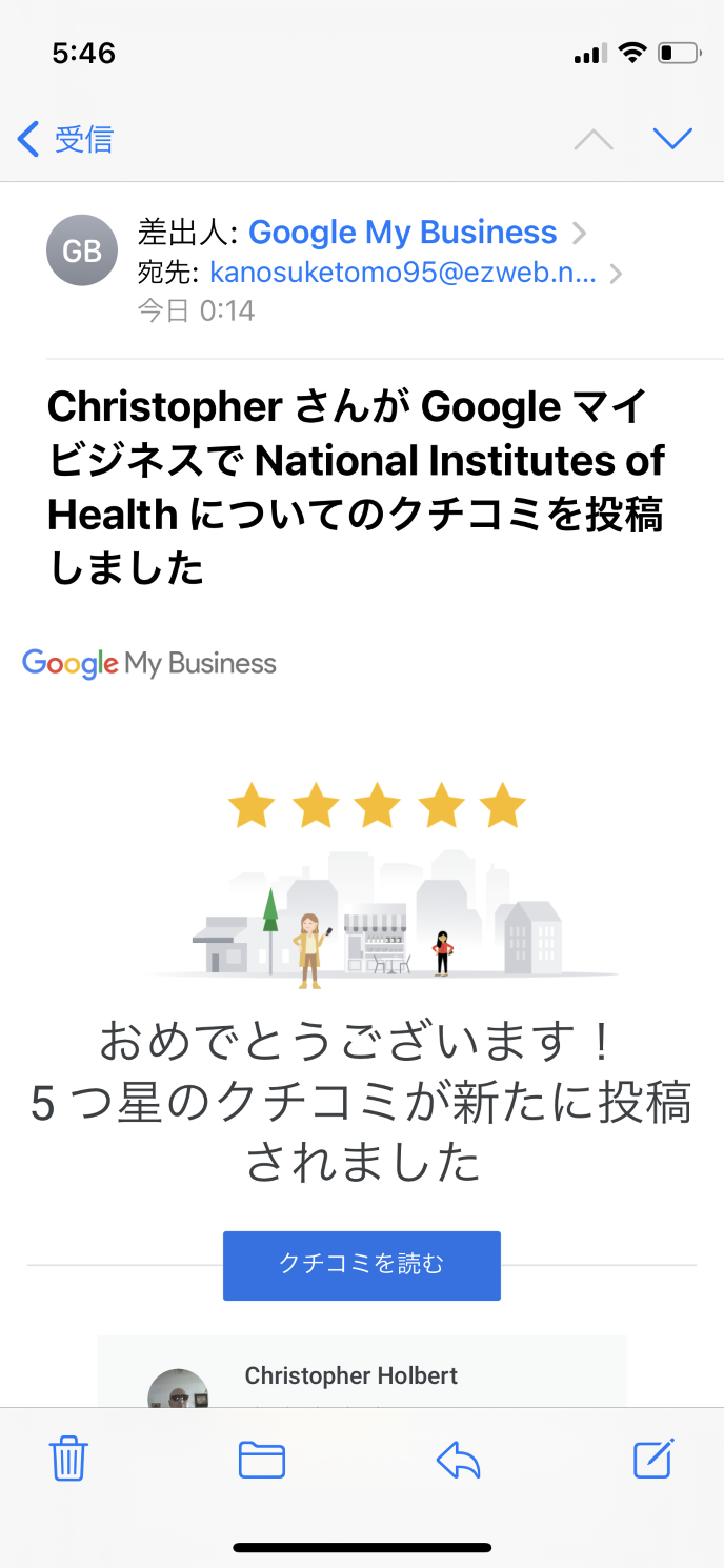 クチコミに返信すると、Christopherさんにお知らせが届きます。