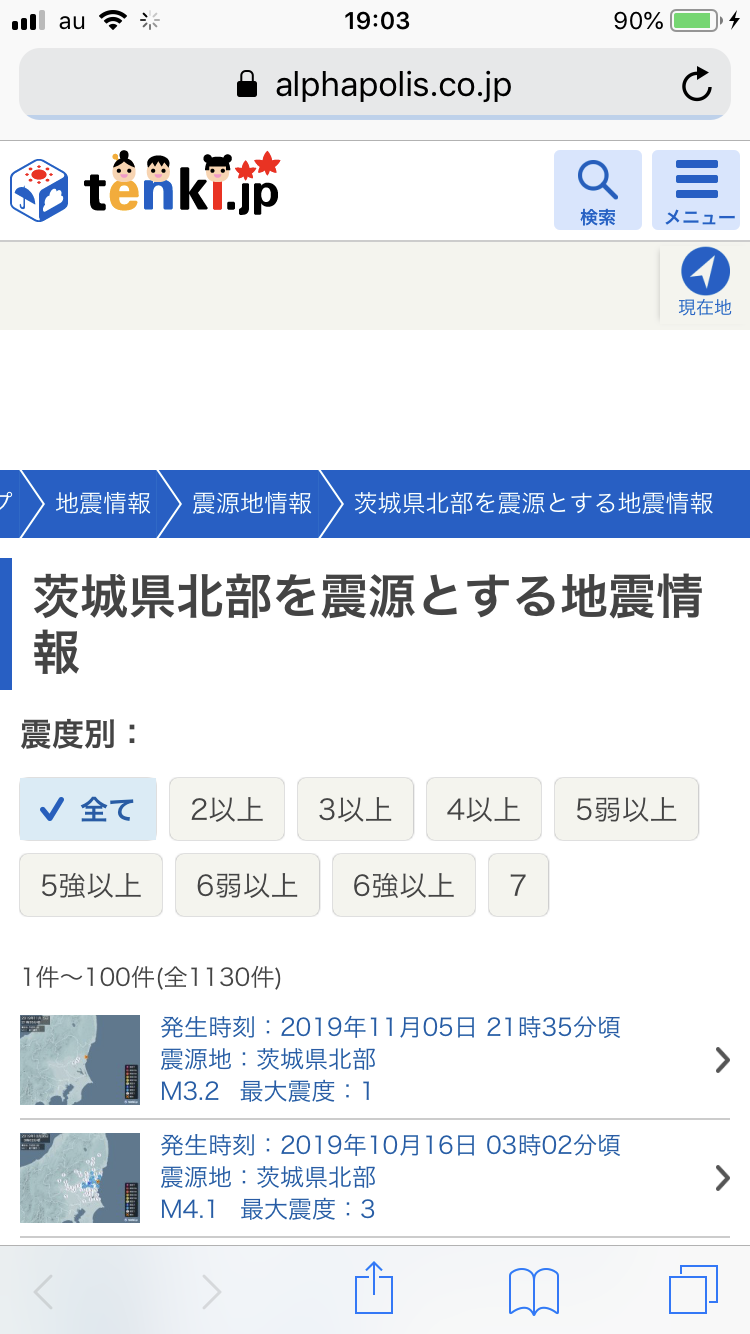 タイトル表示、アルファポリスなのに、茨城県北部地震の画面が…
