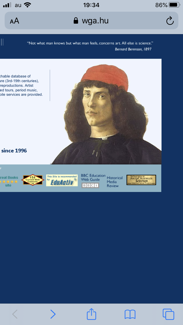 ウェブギャラリーオブアートは、ヨーロッパの美術と建築(3~19世紀)の検索可能なデータベースで、現在48.600点を超える複製物が含まれています。
