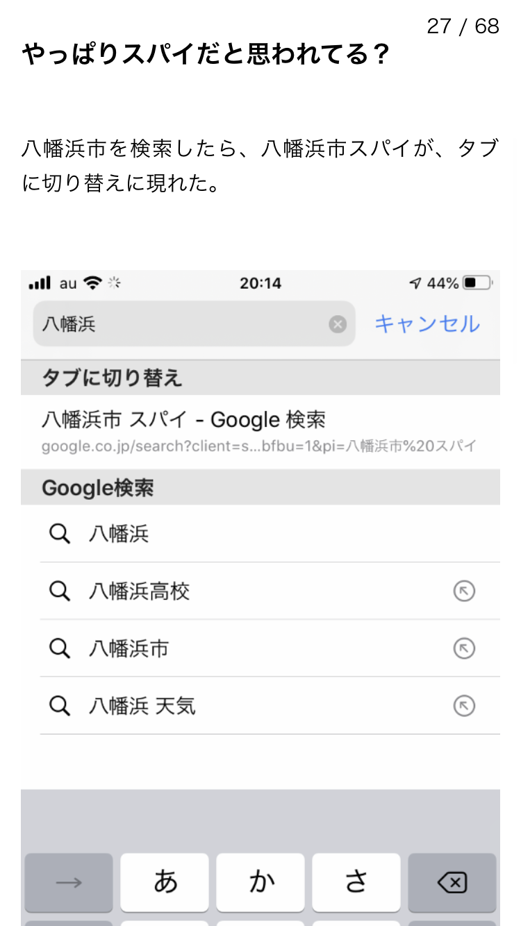 八幡浜市を検索したら、八幡浜市スパイが、タブに切り替えに現れた。