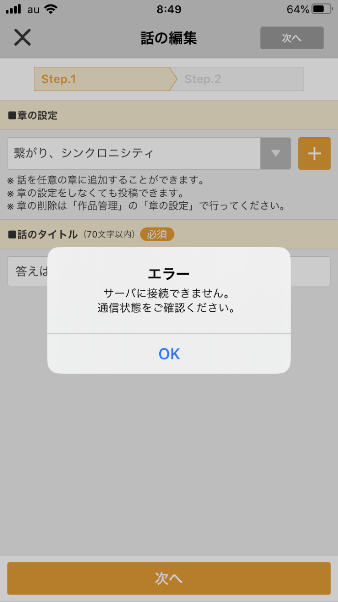 サーバに接続出来ませんの表示は、もう見慣れたけどね。
