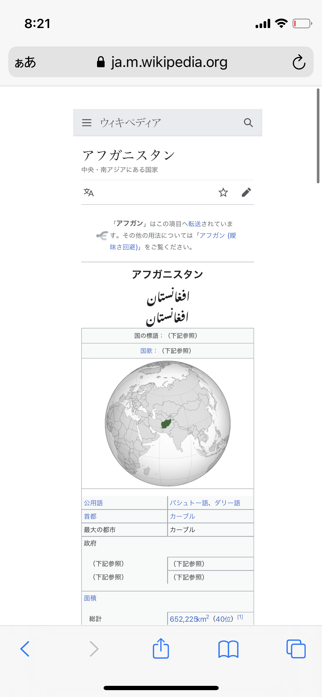 アフガニスタン(ダリー語: افغانستان、パシュトー語: افغانستان、英語: Afghanistan)は、中央アジアと南アジアの交差点に位置する山岳地帯の内陸国である。