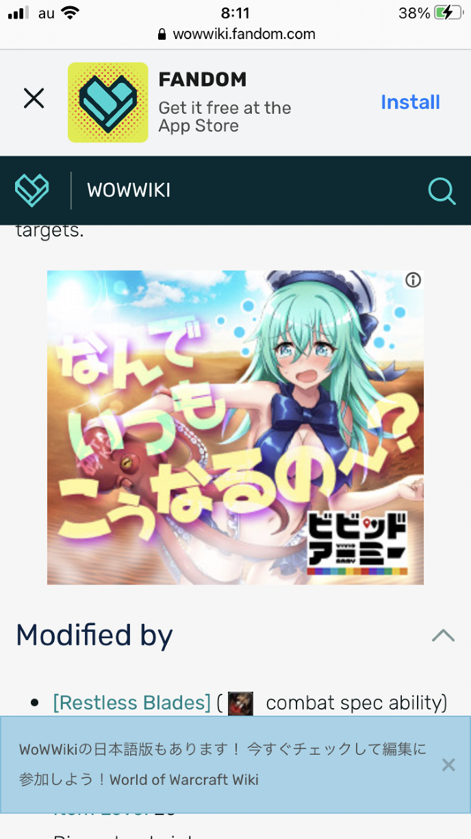 wowredirestを検索したはずが wowwiki.fandom.comの情報にすり替わっている。