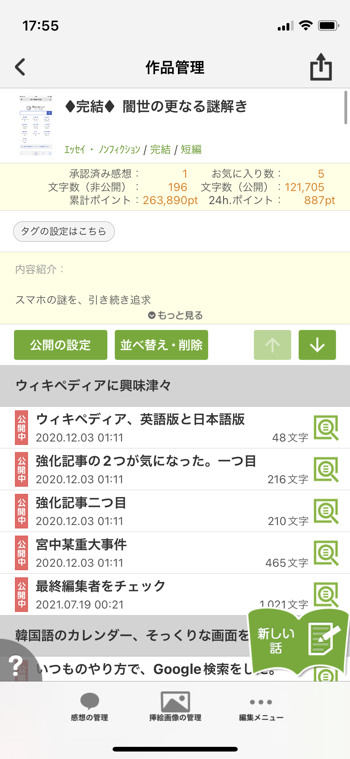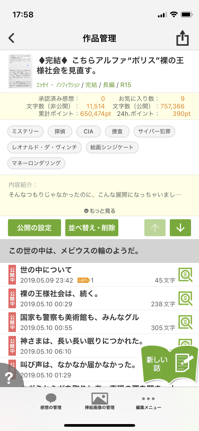- しおり機能で小説の続きが読みやすい!