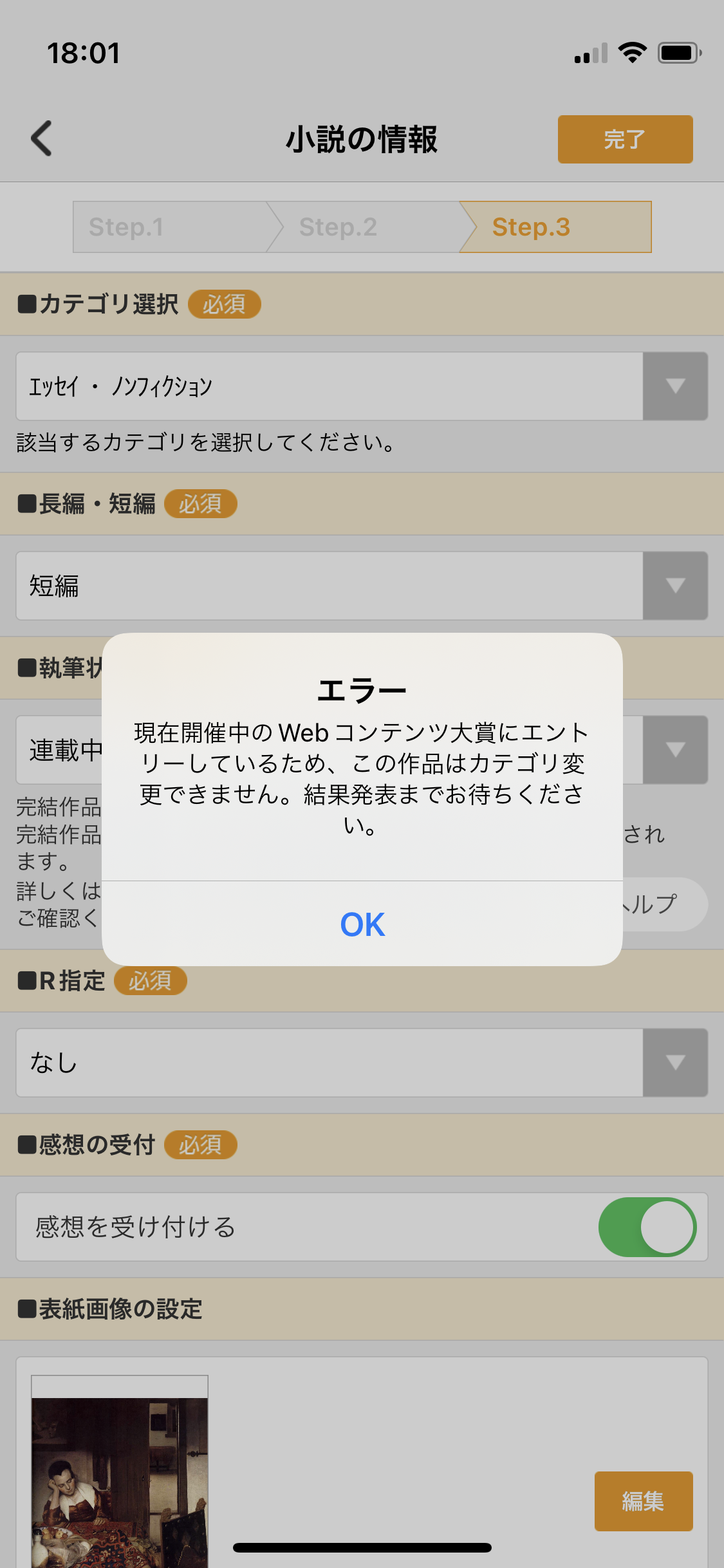 エントリーしていたら、こんな表示が現れ、通常は、カテゴリー変更が出来ないのがルールです。