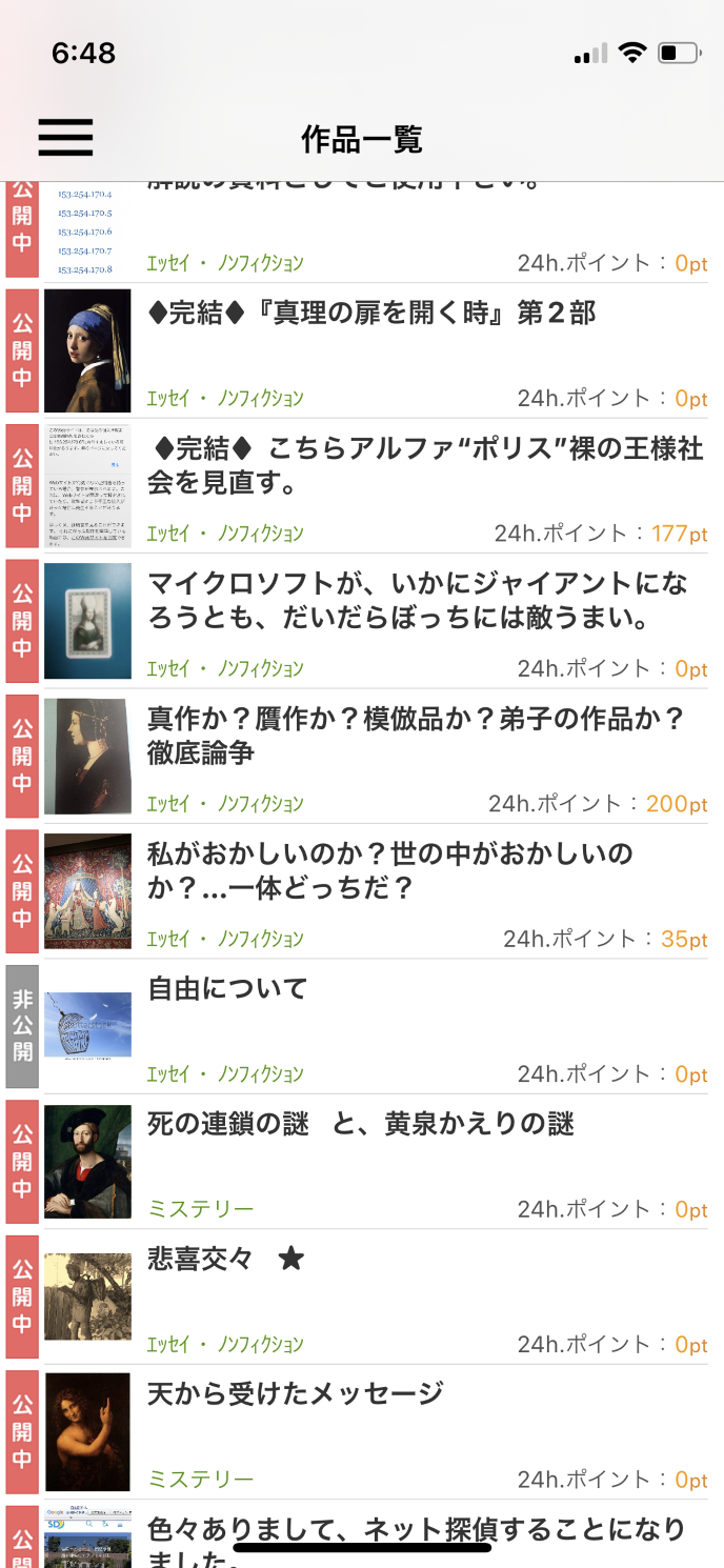 とりあえず、手動で全作品公開にしたんだけど、非公開にされてしまった作品が2作品あります。