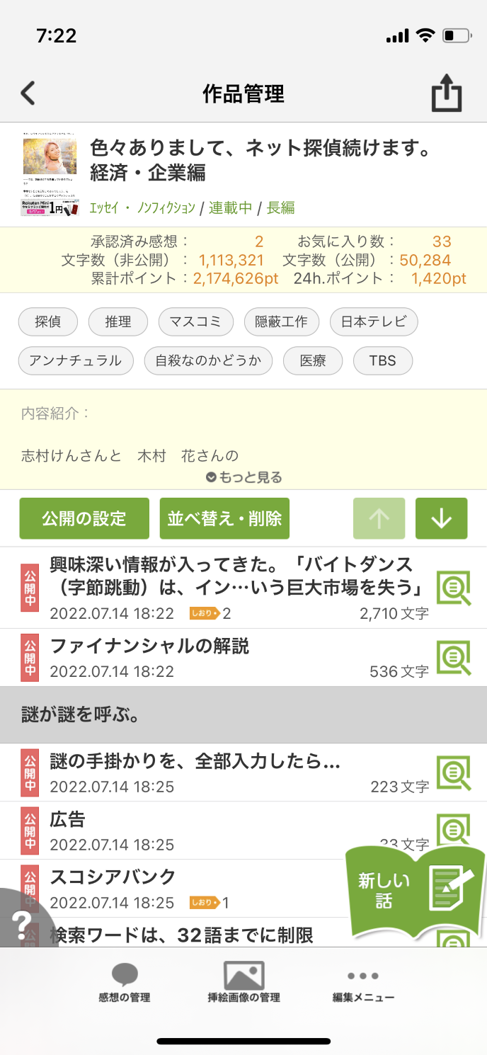 2022年7月7日 その日は、七夕 カテゴリーを、エッセイ・ノンフィクションに変えられてました。
