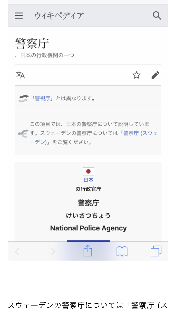 スウェーデンの警察庁については「警察庁 (スウェーデン)」をご覧下さいってことは、海外版ウィキペディアを日本語に翻訳下画面を、私が見ていたってことだと認識してます。