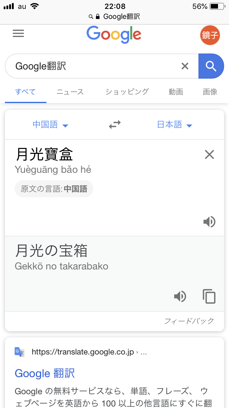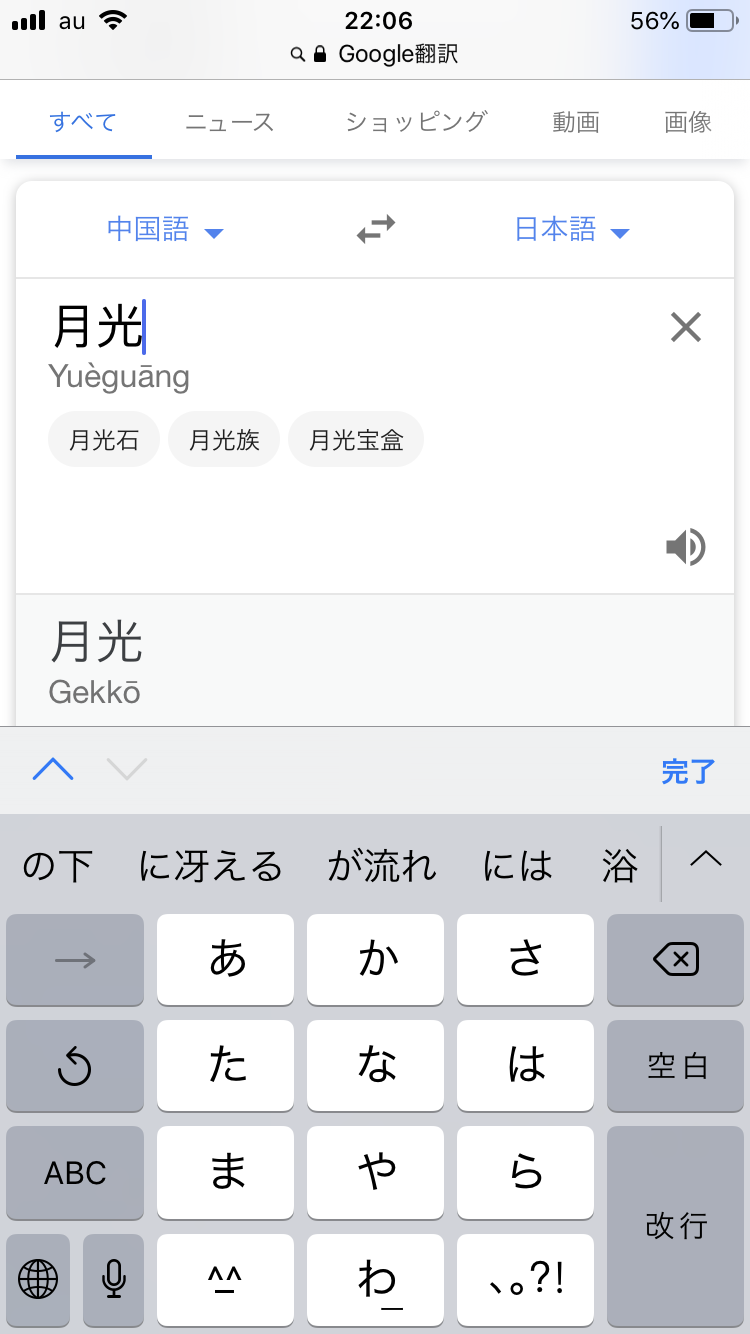 日本語の月光は、中国語でも月光 (発音は違うけど)