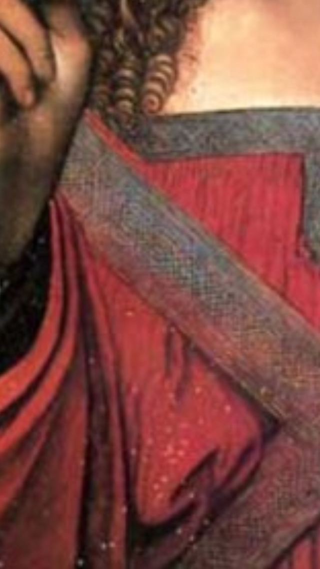 サルバトール・ムンディは、原画ではない、決定的証拠。クロス部分に食い込んだ衣服の皺の形(描写)