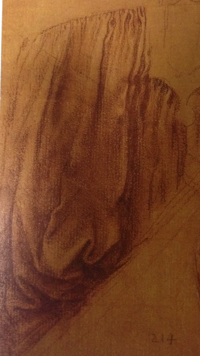 クロス部分、衣服が食い込んだところ、皺の形が、レオナルドの素描に似ていない。