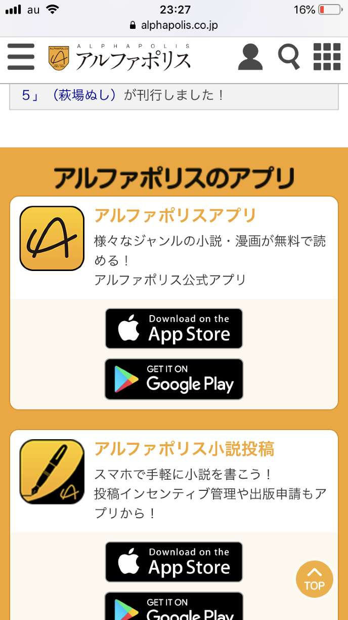 敢えて、アルファポリスのログイン画面から入ってみた。