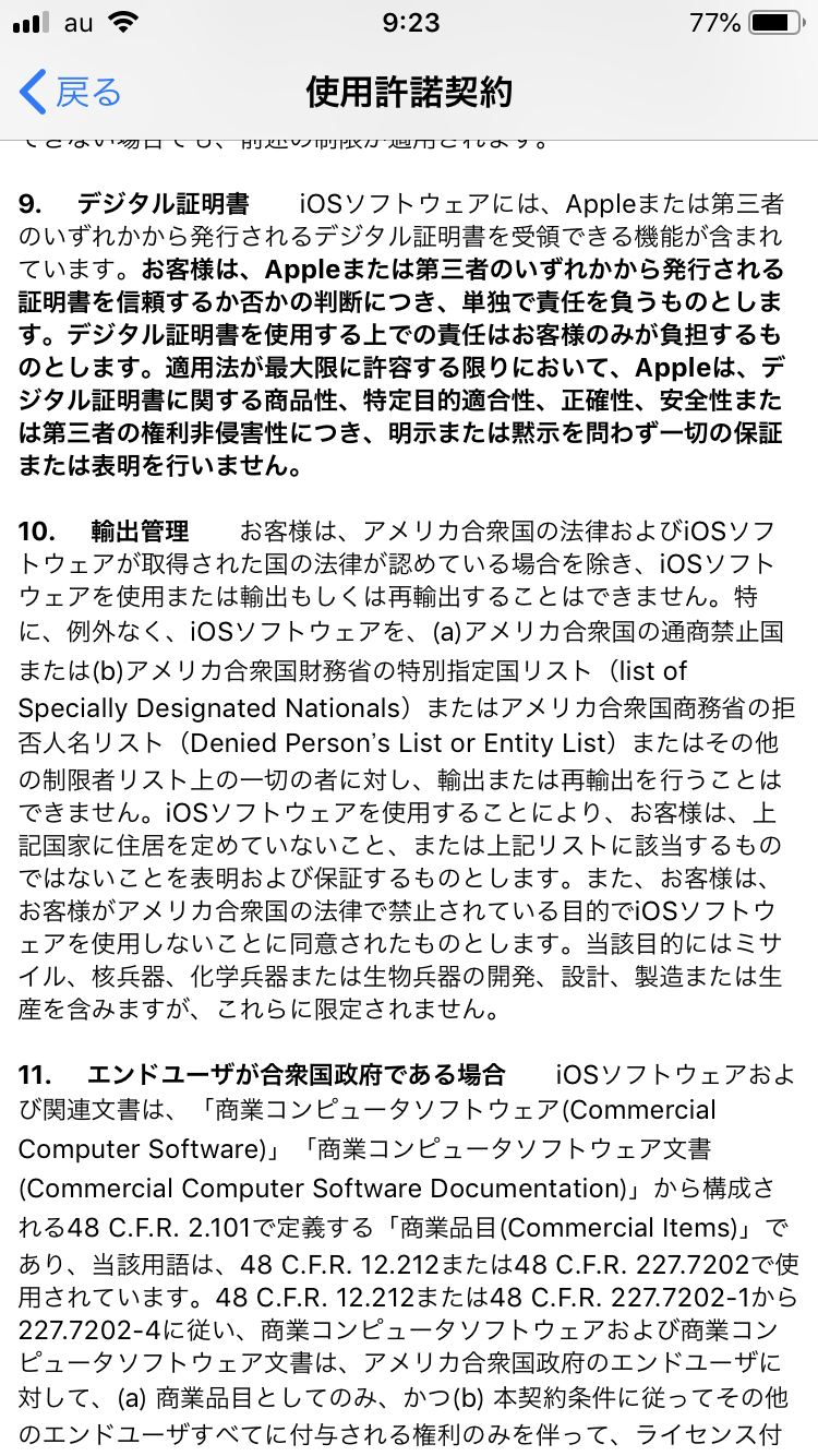 お客様は、アメリカ合衆国の法律およびiOSソフトウェアが取得された国の法律が認めている場合を除き、iOSソフトウェアを使用または輸出もしくは再輸出することはできません。