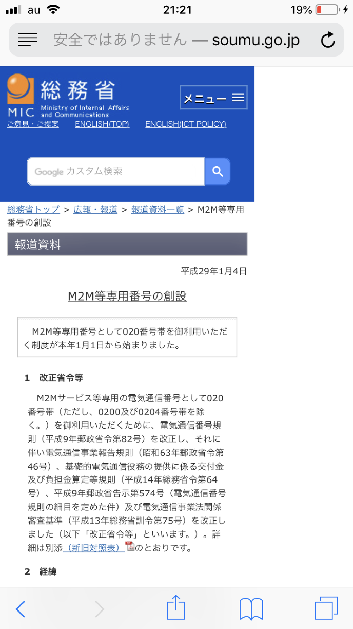 今般、当該答申を受けて電気通信番号規則等の一部を改正する省令(平成28年総務省令第94号)等を制定し、本年1月1日に施行したものです。