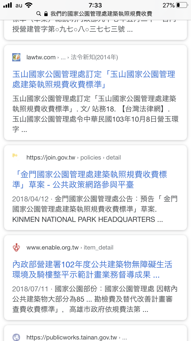 我們的國家公園管理處建築執照規費收費