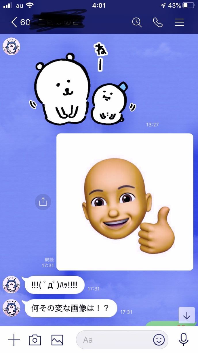 LINEにて、ミー文字