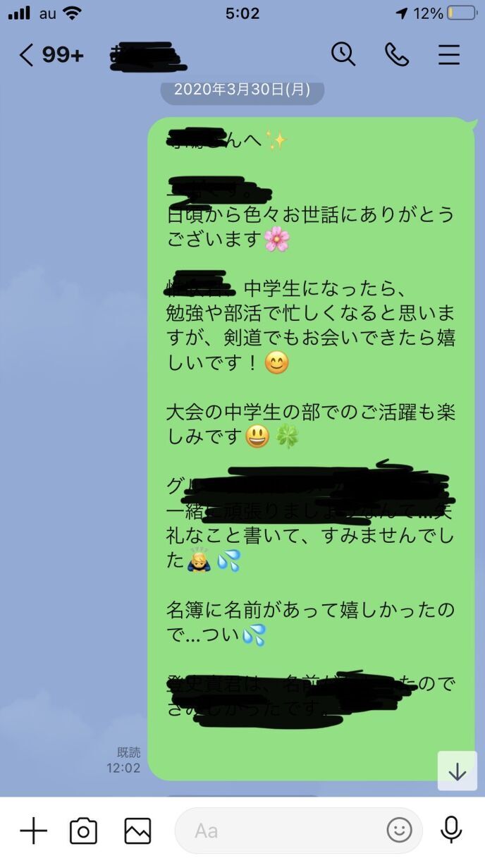 しおりを挟む息子(次男)は、剣道をしているので、保護者の人たちのメンバーで、グループLINEに入っている。
