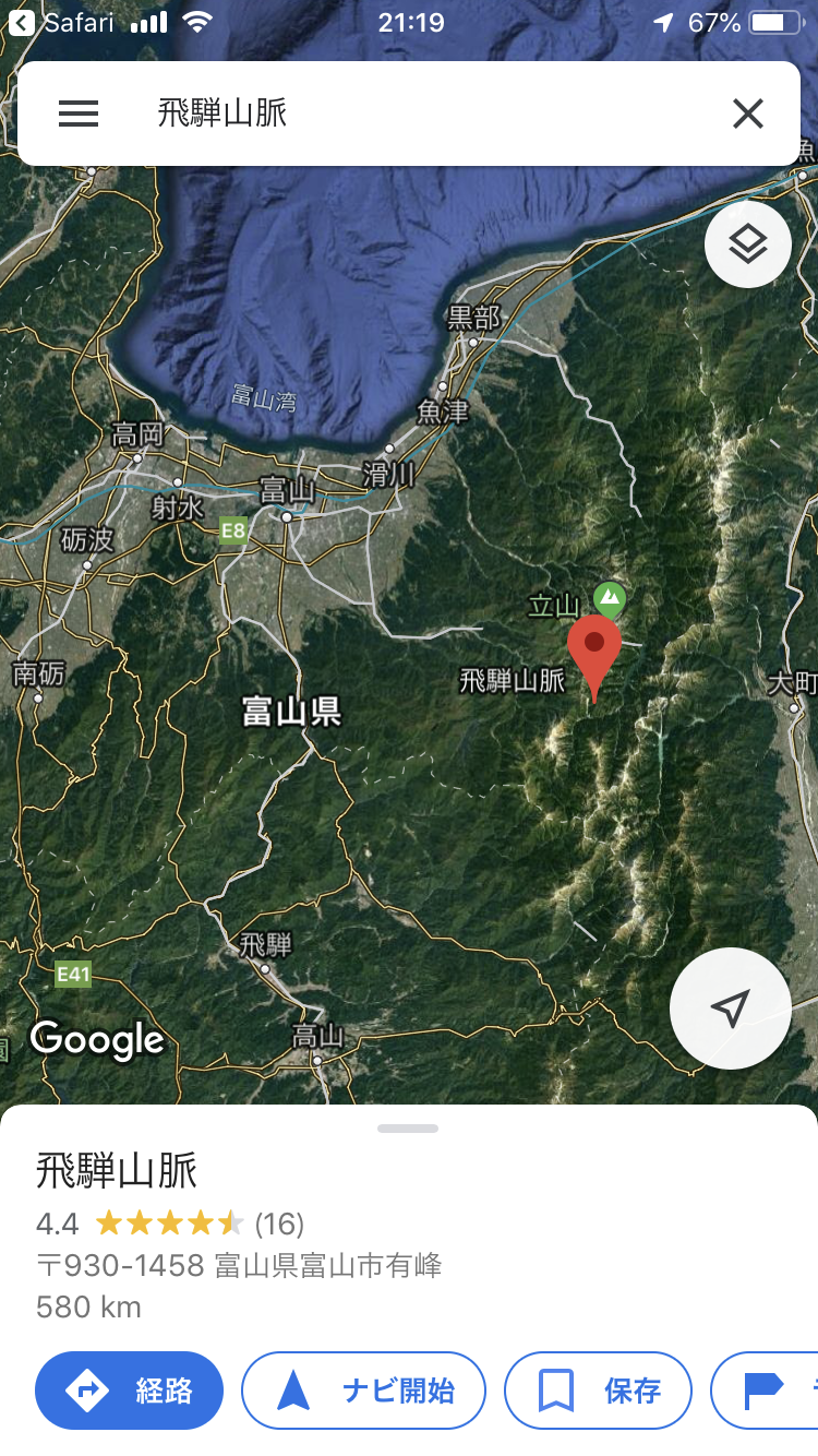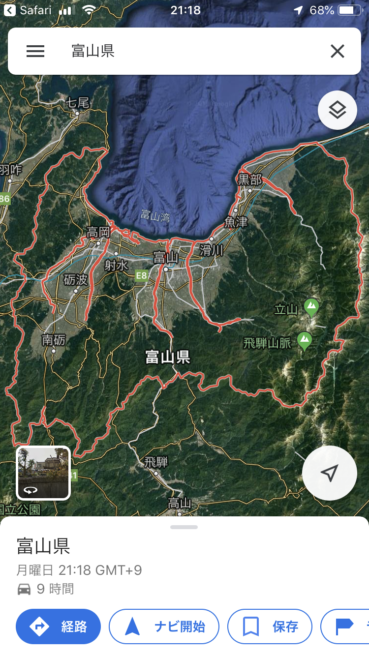 スマホのマップで、富山県を調べてみようと思った。