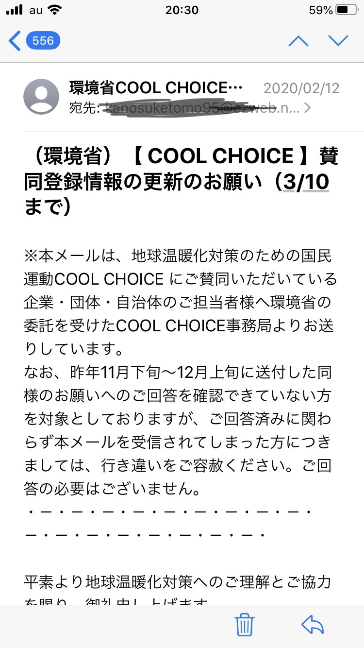 2月12日、水曜日、環境省からメールが届く。