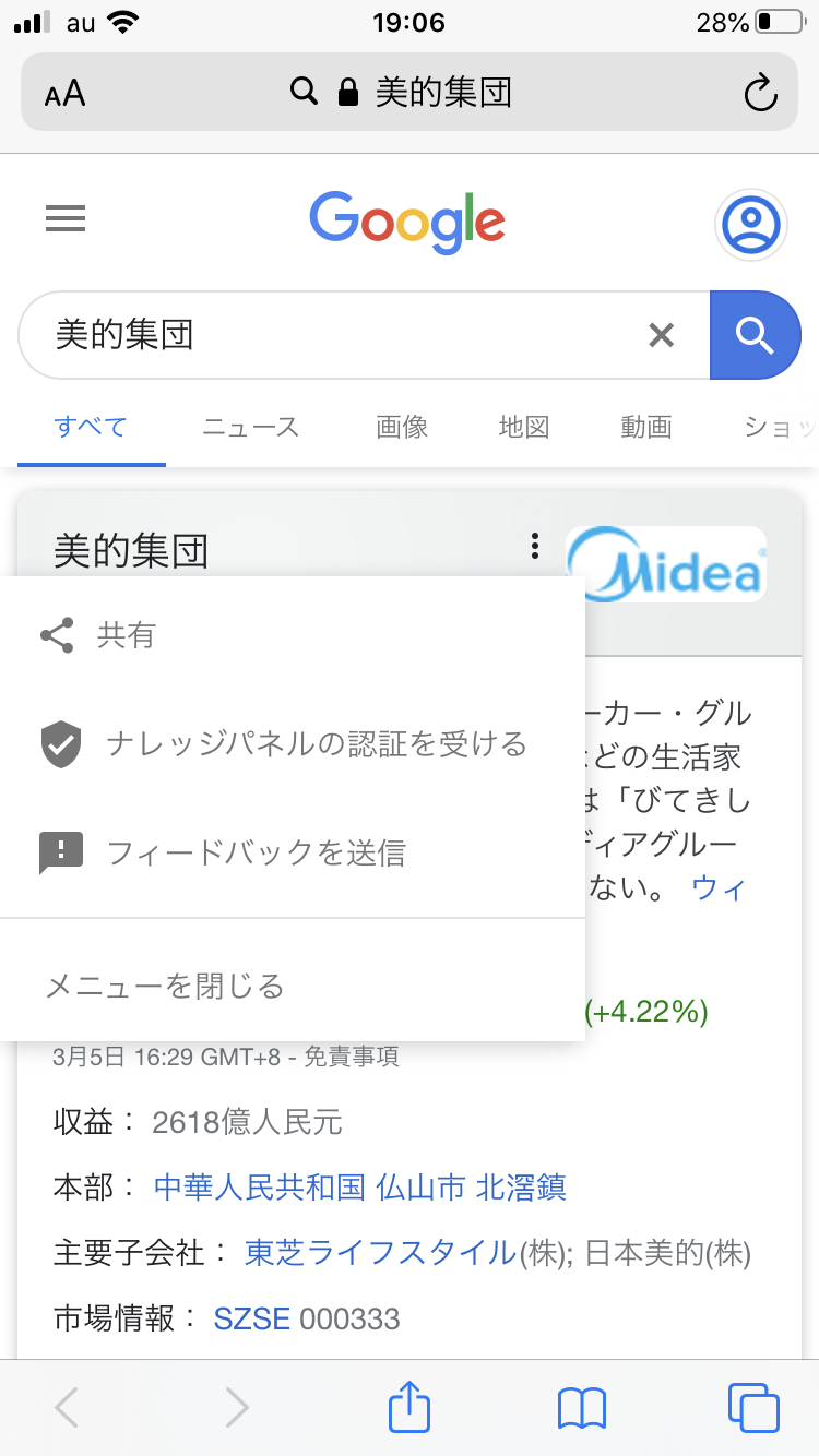 美的集団、ナレッジパネルの認証を受ける。media groupのサイトで繋がる。