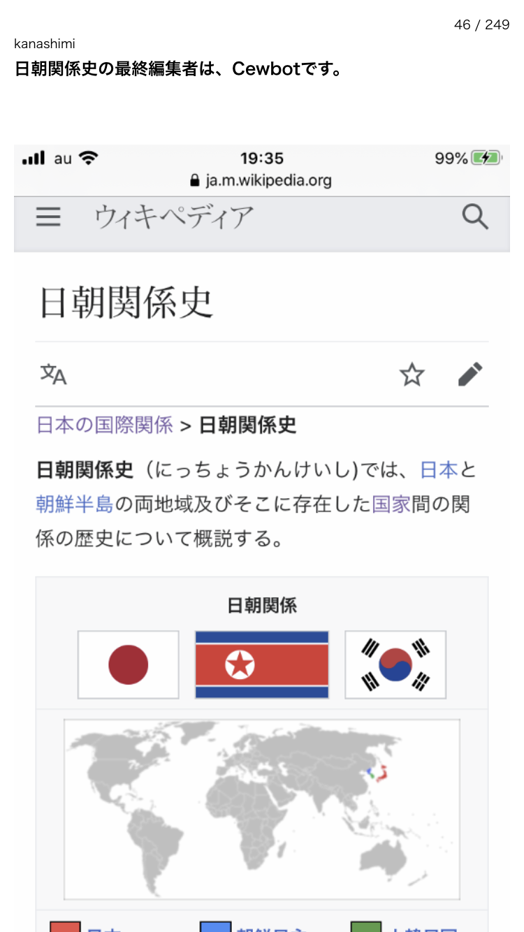 南沙諸島の最終編集者は、cewbot、日朝関係史の最終編集者も…