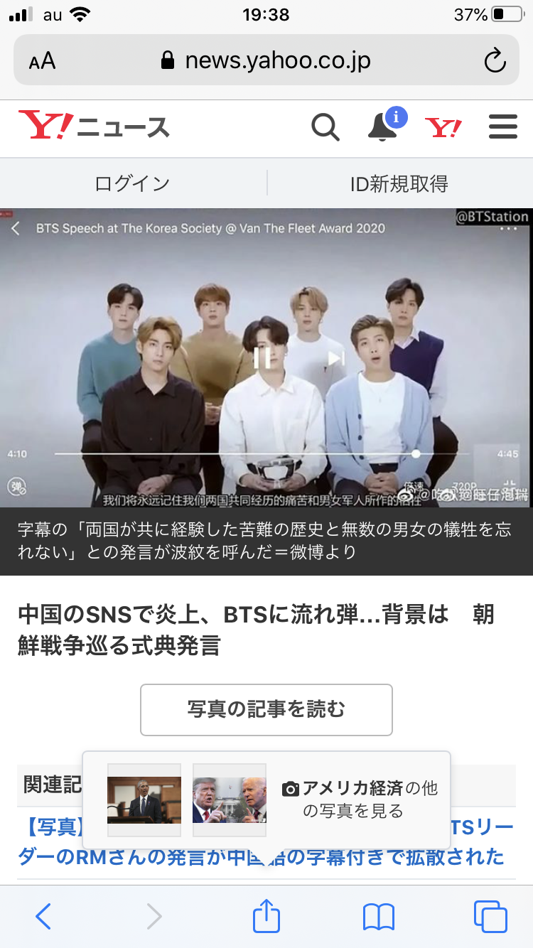これは、記憶に新しい。中国のSNSで炎上、BTSに流れ弾…背景は 朝鮮戦争巡る式典発言