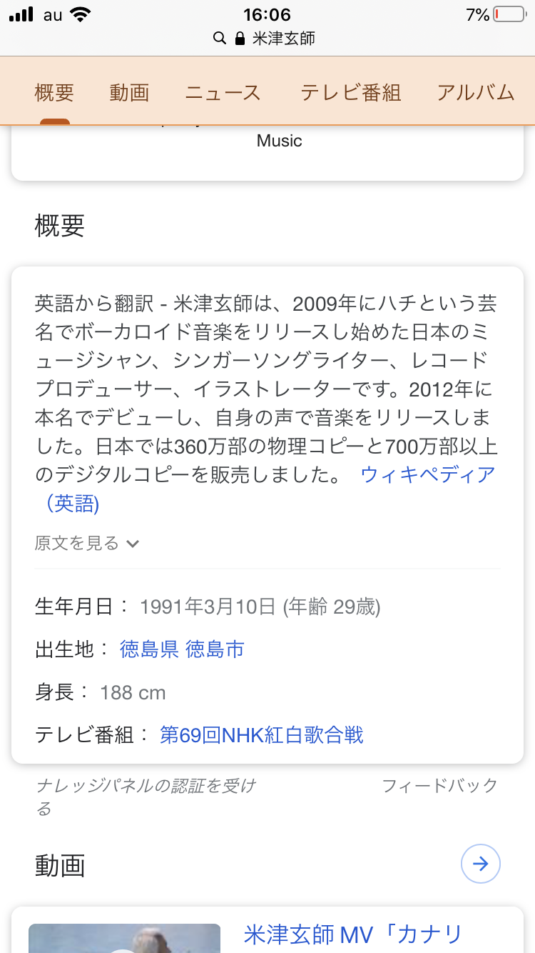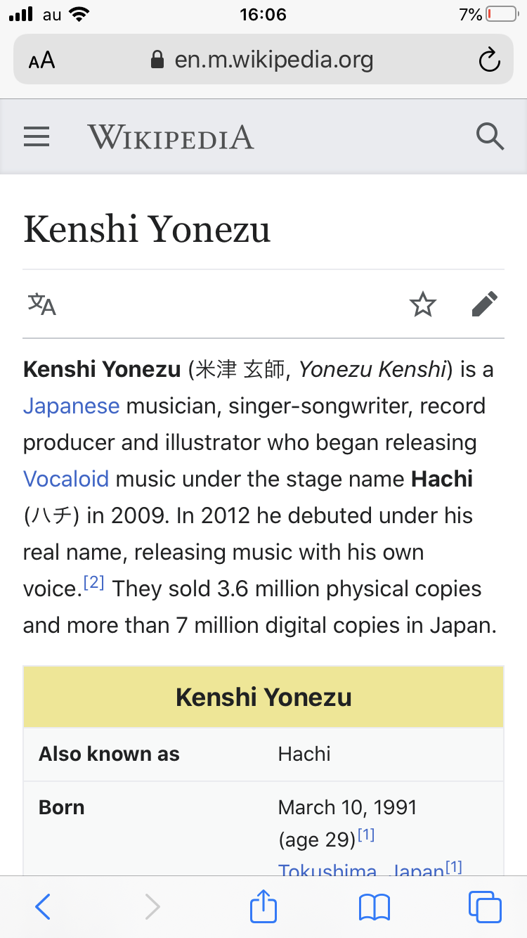 試しに、米津玄師さんのウィキペディアのページを見てみようと思った。