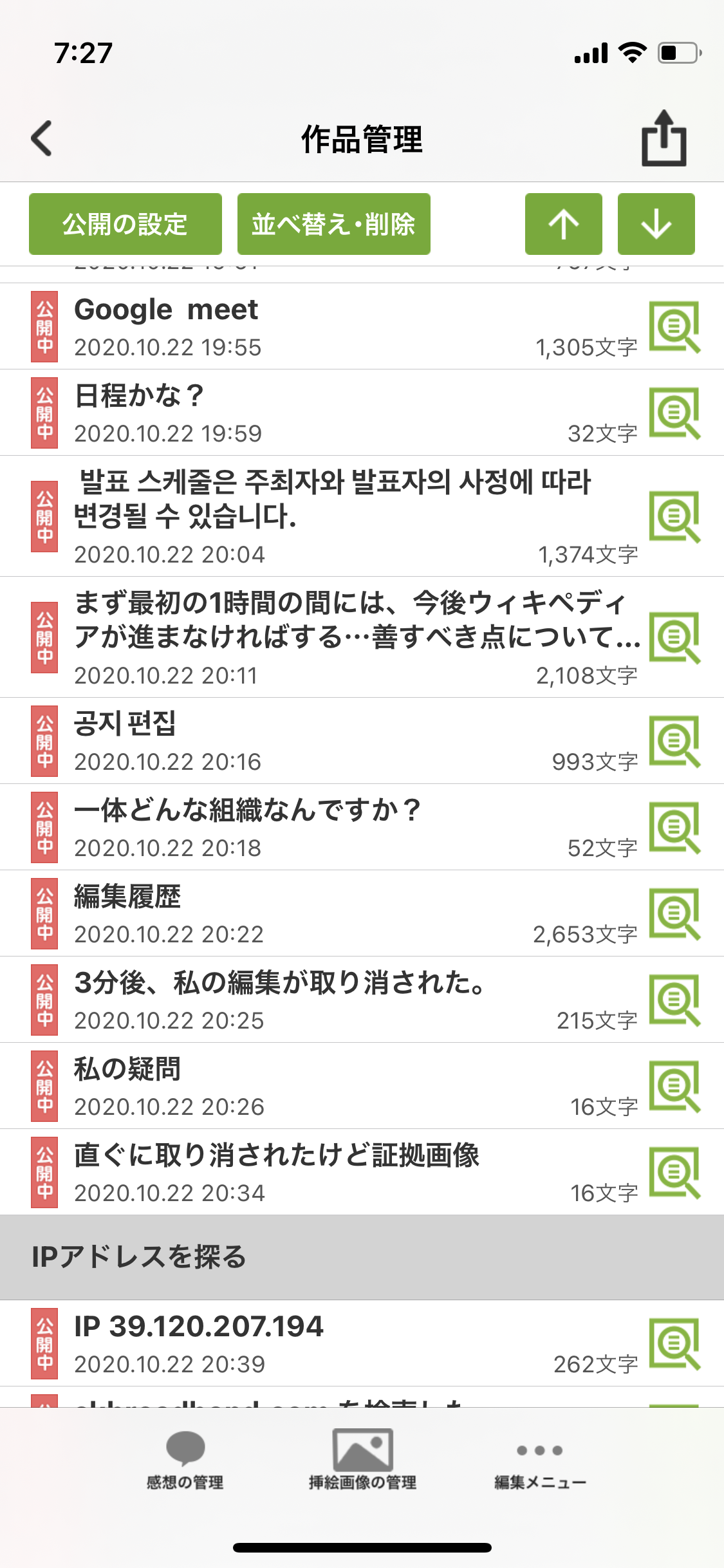 時々、自分の編集が見れない。