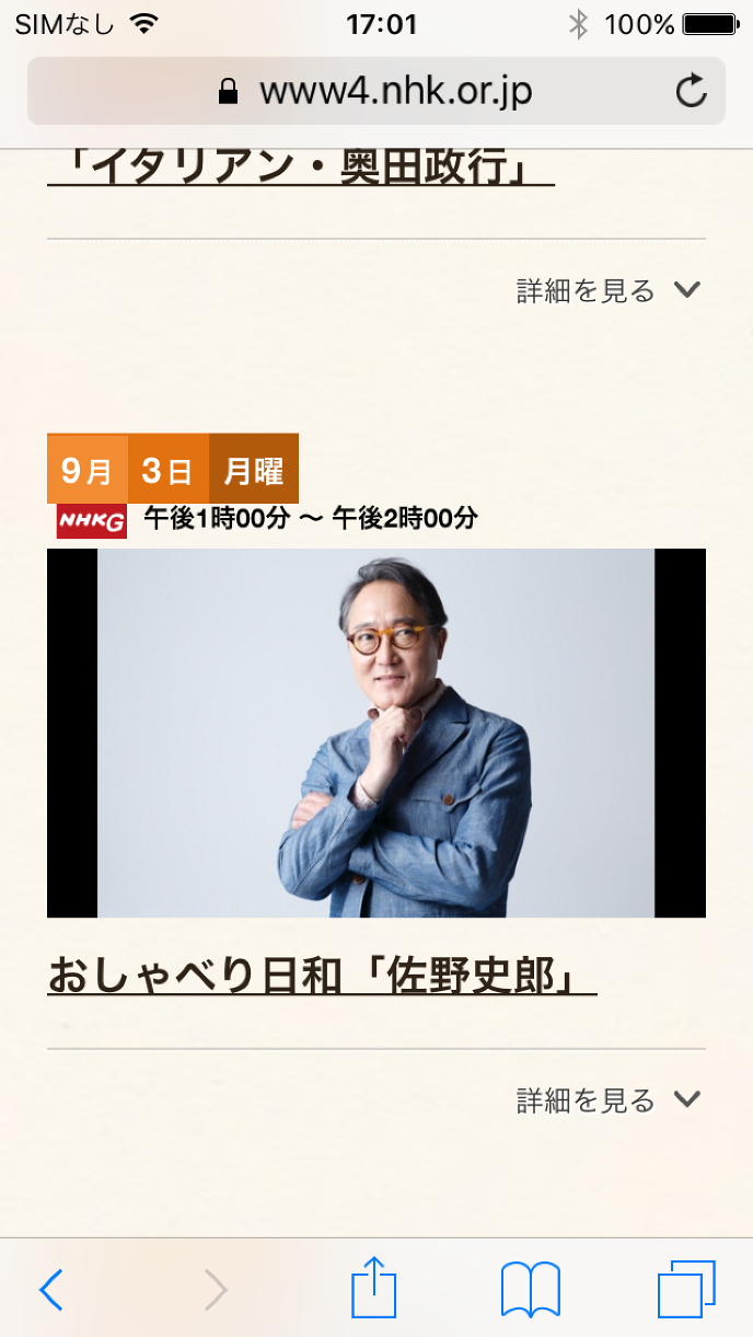 丁度その日、NHKのごごなまで、佐野史郎さんがゲスト出演され、一反木綿について語られていた。
